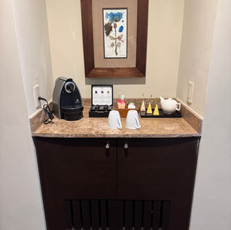 There was no standing at a front desk, no waiting in line. Instead, we were invited to sit on a couch while everything was handled for us. Champagne appeared for the adults, and a hibiscus iced tea was served to the kids in proper glassware.
