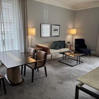 As we stepped through the door, the doormen greeted us with warm smiles, opening car doors and the hotel entrance as if we were royalty. The friendly staff continued to impress us throughout our stay—even the painter we encountered in the elevator shared a smile! Our first impression was made in the beautiful lobby area, particularly the breathtaking Garden Court with its glass ceiling, which left us in awe.